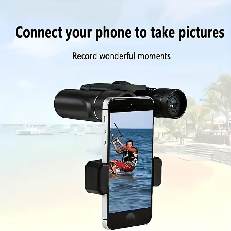 The universal smartphone adapter is designed to fit most modern mobile devices, allowing you to align your camera lens with the eyepiece of BiniClaxi Binoculars for photography.