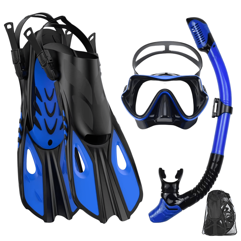 Receive everything needed for immediate underwater exploration—mask, snorkel, fins, and storage bag—in one comprehensive package. No additional purchases required, simply unpack and dive into your aquatic adventure with complete confidence.