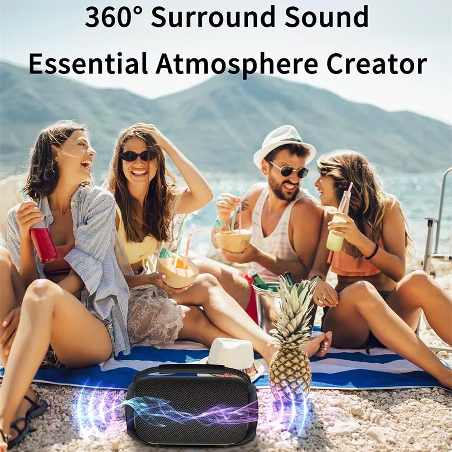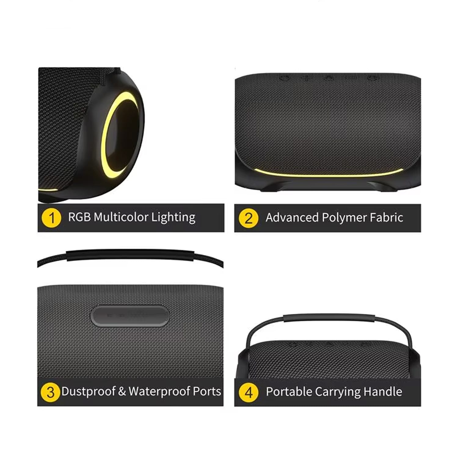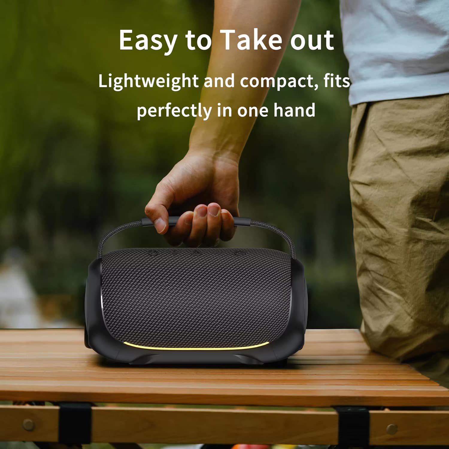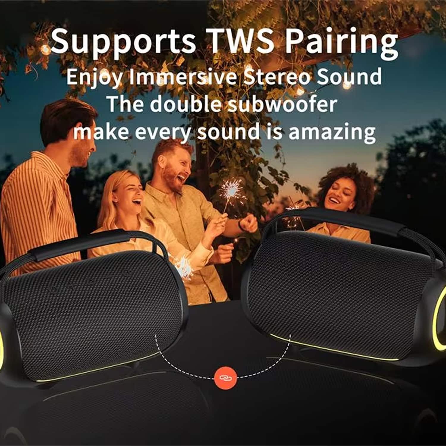 The BlueSpiso delivers powerful 40W output, significantly louder than typical 10-20W portable speakers, with enhanced bass that fills outdoor spaces effectively without distortion even at maximum volume levels.