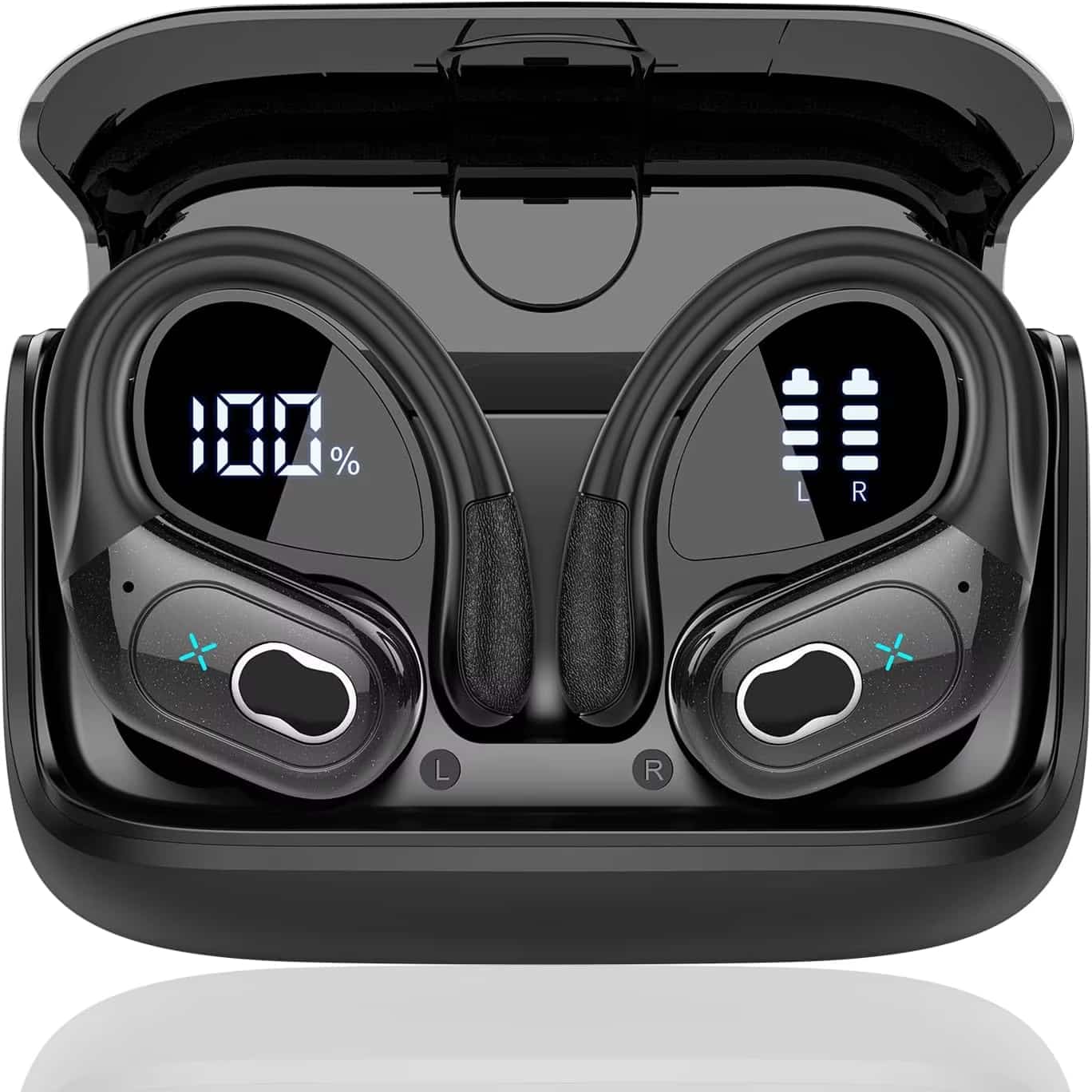 The dual LED display on the charging case shows the remaining battery level, and the earbuds will notify you when the battery is low.