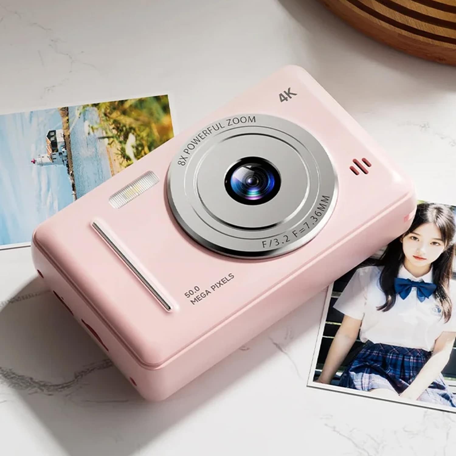 The CamTipco Compact Camera excels in low light with its dual-camera flash and high-performance sensor, ensuring bright, clear photos even in dim conditions.