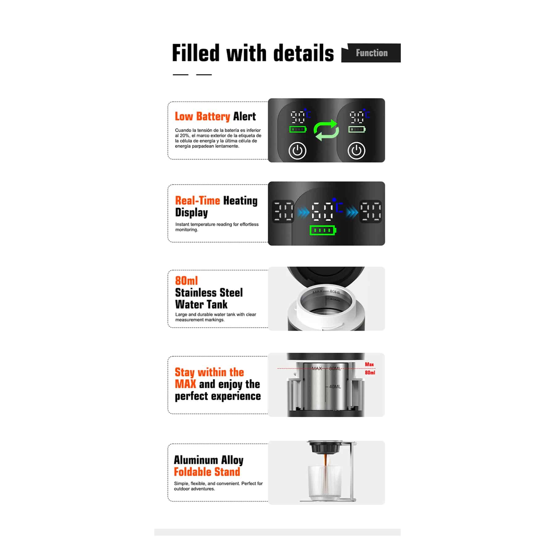 The advanced pump system delivers intense pressure to extract deep flavors and rich crema. It ensures professional quality espresso that rivals expensive home machines, all within a compact, handheld device.