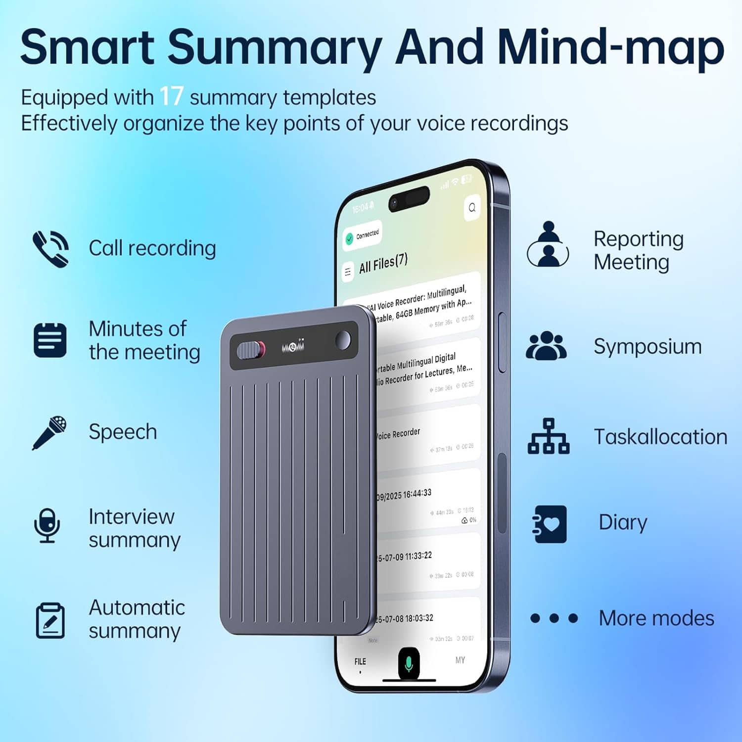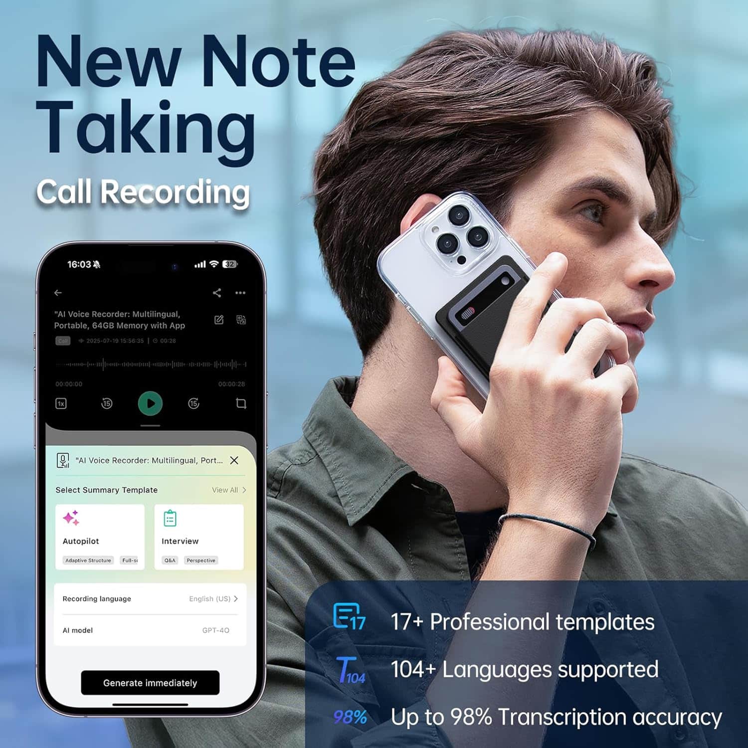 CriNotix AI Voice Recorder includes 64GB of built-in storage, providing ample space for extended recording sessions, multiple projects, and long-term audio archiving without requiring external memory cards or cloud storage.