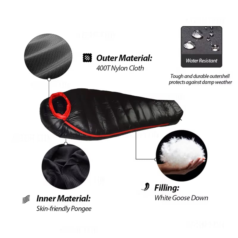 Advanced goose down insulation traps body heat effectively, keeping you warm in freezing conditions throughout the night for a restful sleep.
