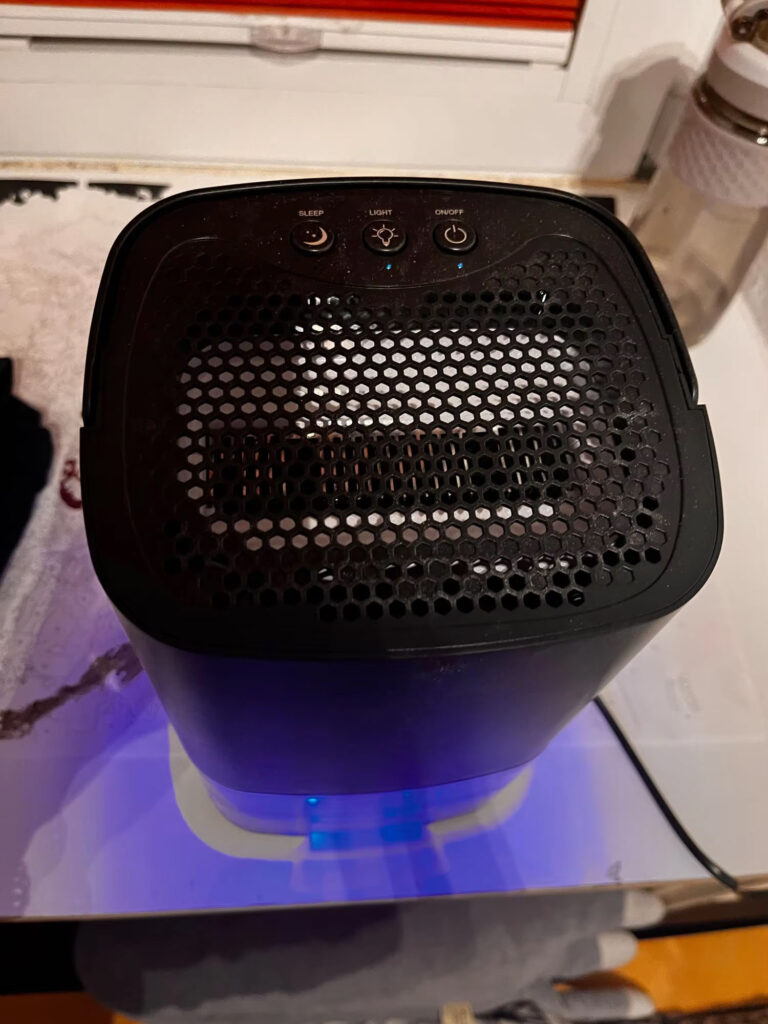 Compact yet powerful! Solved the dampness issues in my bathroom that my landlord couldn’t fix. The blue light option adds a spa-like feel.