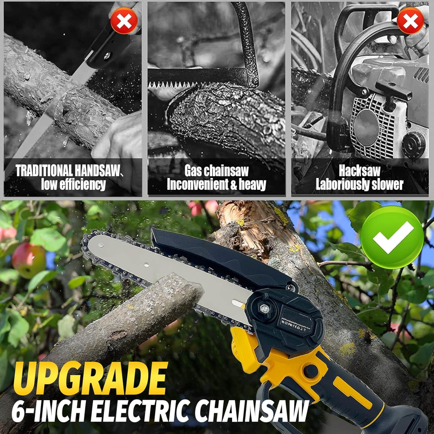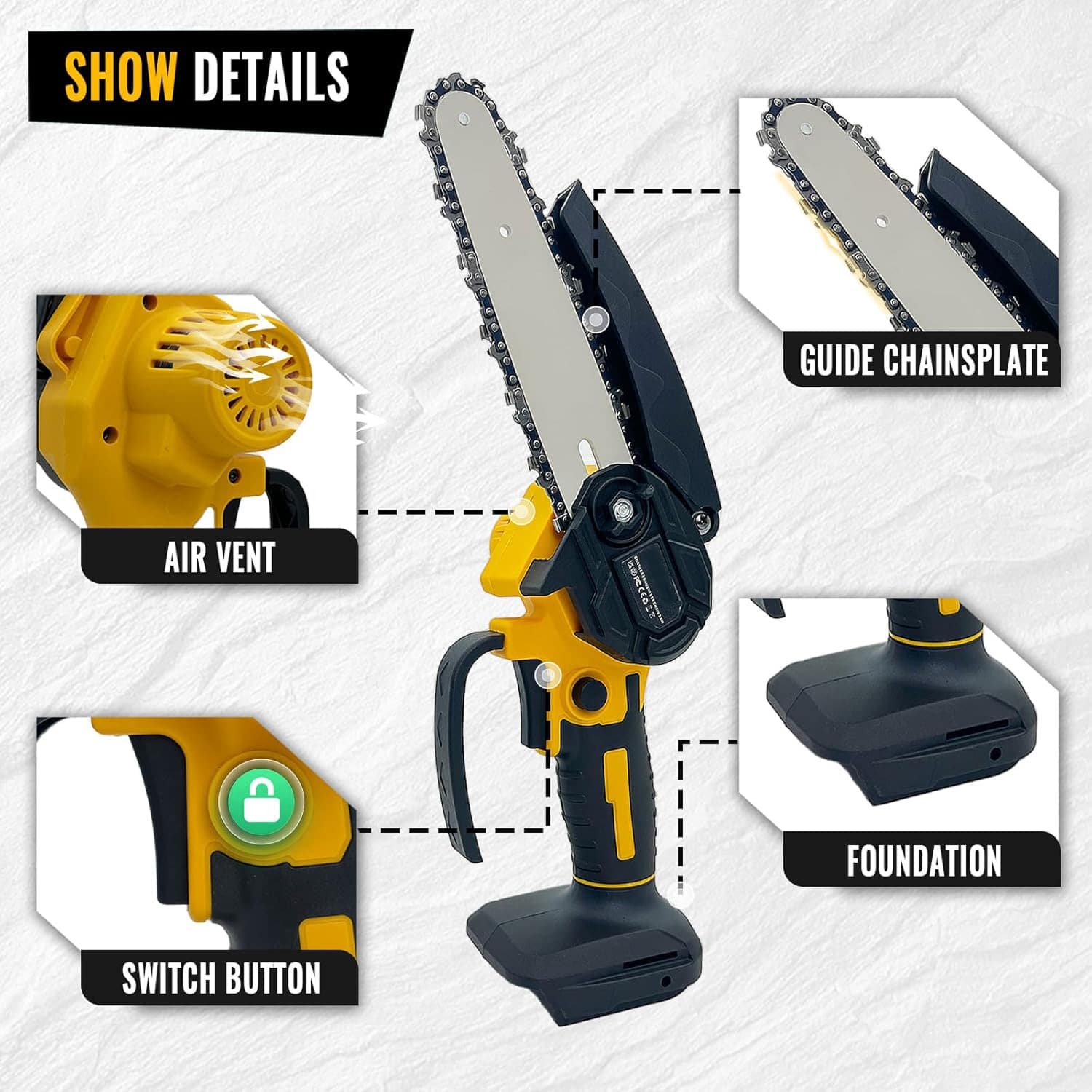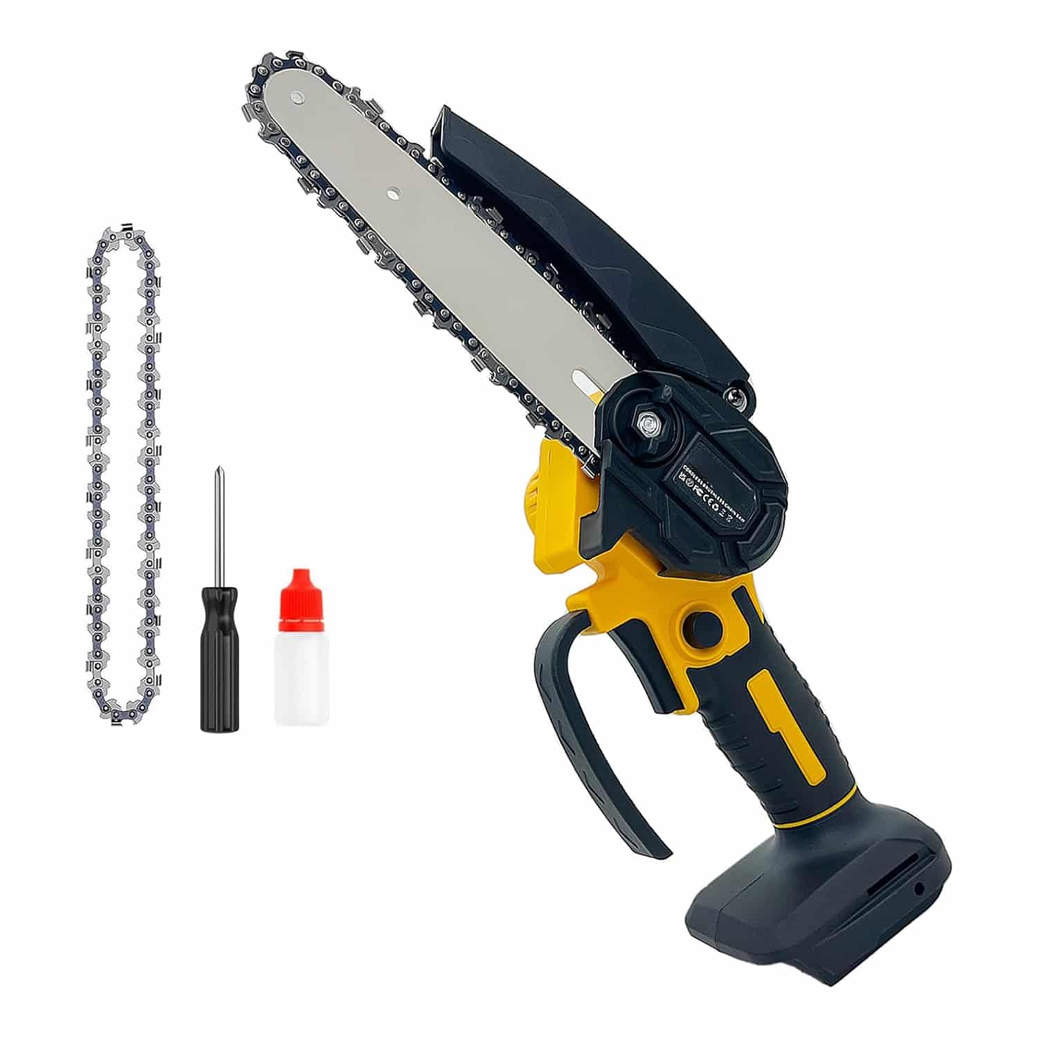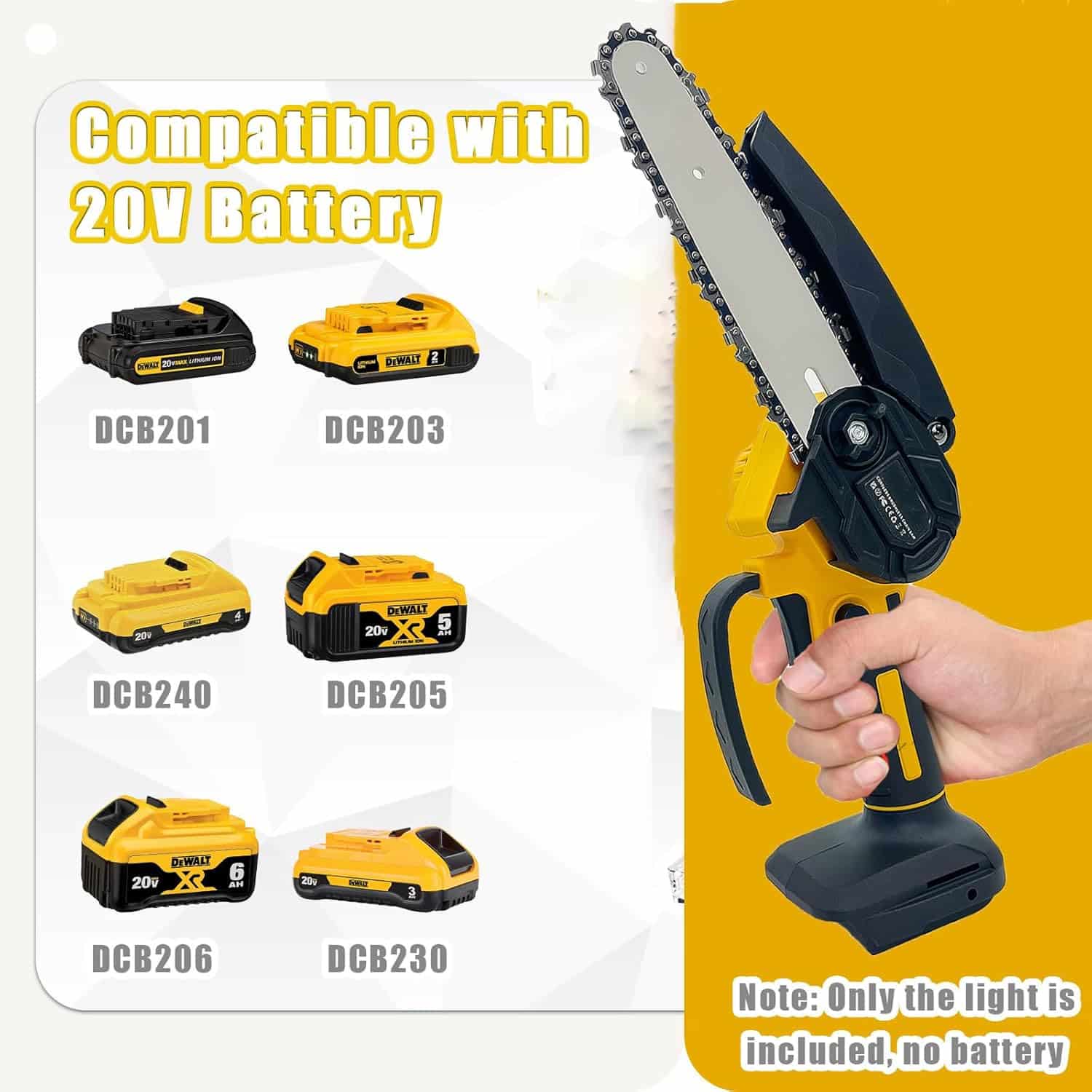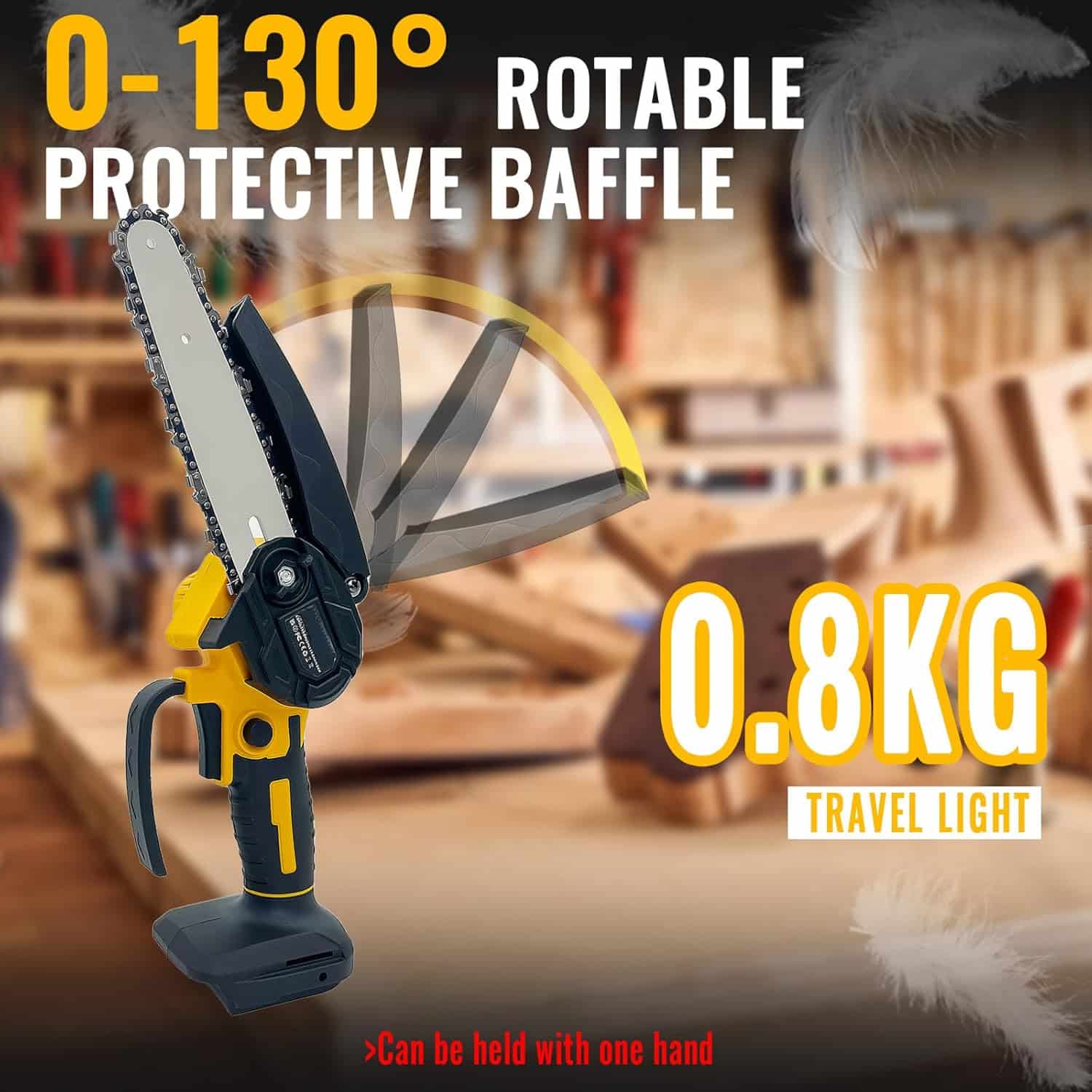The DuciSaw Mini Chainsaw weighs approximately 3-4 pounds without a battery, making it exceptionally lightweight. This reduced weight minimizes fatigue during extended use and overhead cutting tasks.