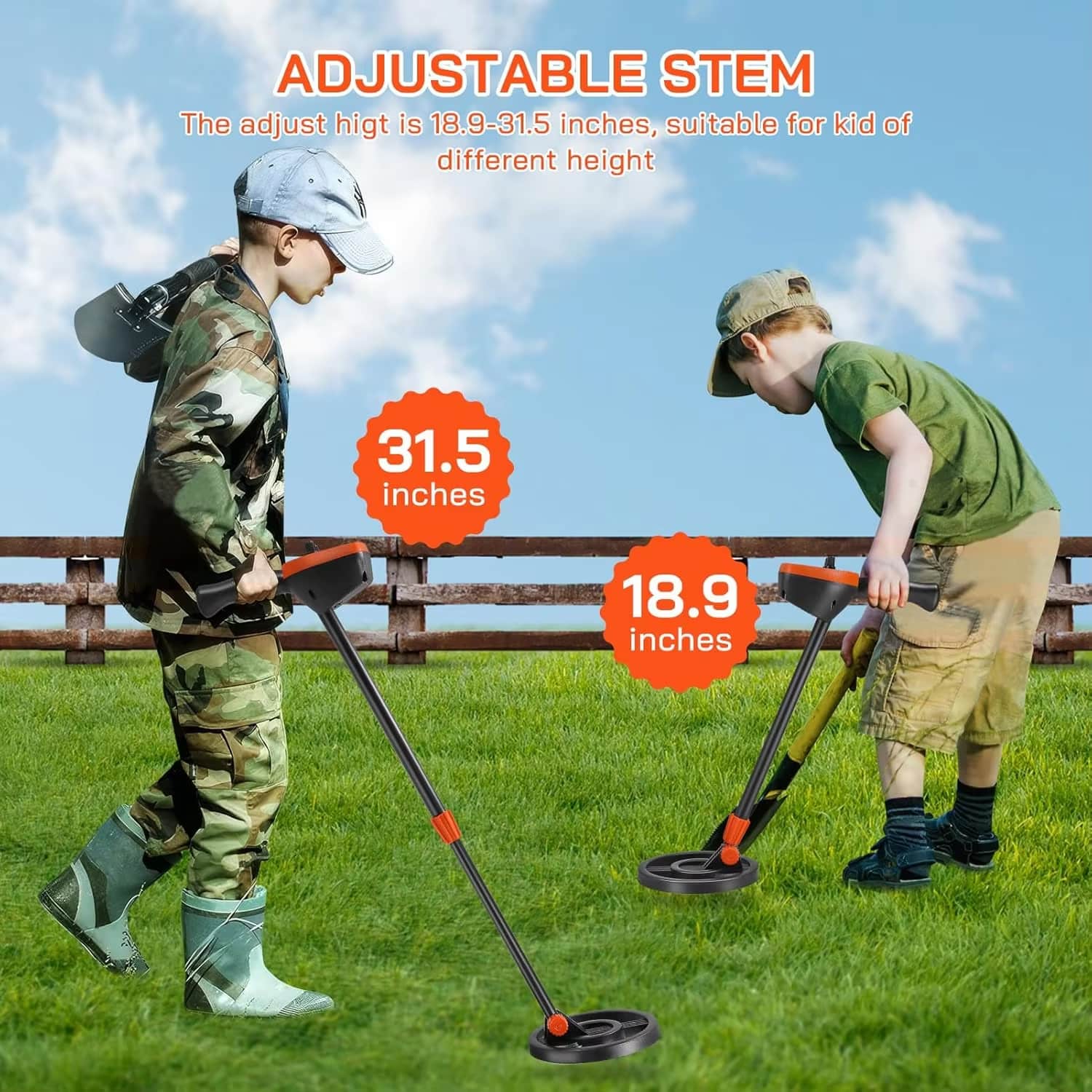 Height-adjustable stem extends from 18.9 to 31.5 inches, accommodating growing children and different body types. The ergonomic non-slip grip ensures comfortable handling during extended treasure hunting sessions, reducing fatigue and maximizing enjoyment throughout adventures.
