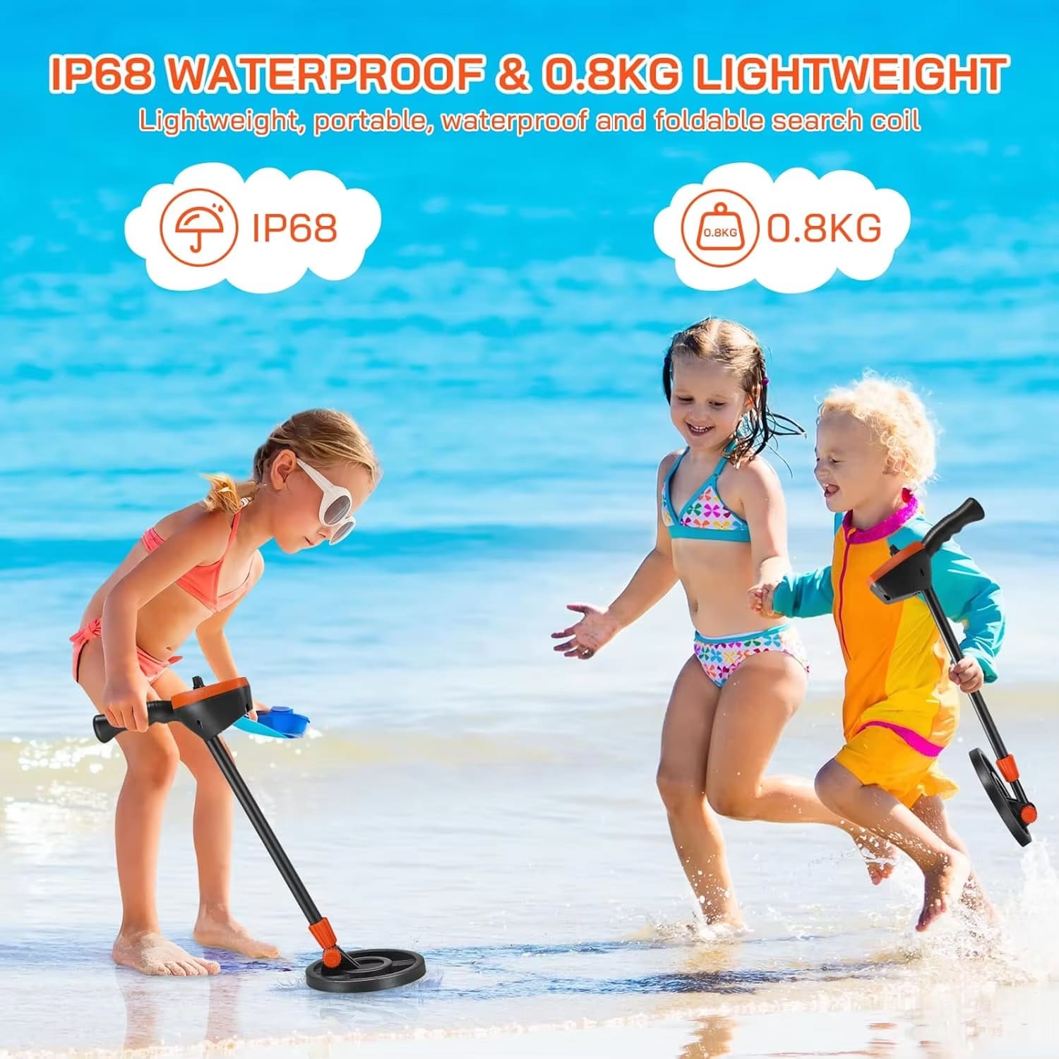 The Findytrex Metal Detector For Kids features an IP68 waterproof search coil, allowing safe exploration in shallow water, wet sand, and rainy conditions. Your child can hunt for treasures at the beach, park, or garden without equipment damage concerns.