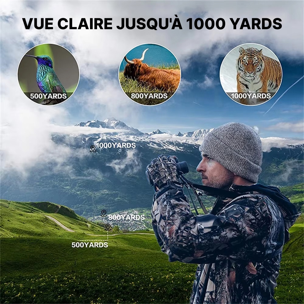 You'll see fine details like small birds at 500 yards, medium wildlife clearly at 800 yards, and larger animals with excellent clarity at 1000 yards, making them perfect for hunting and nature observation.