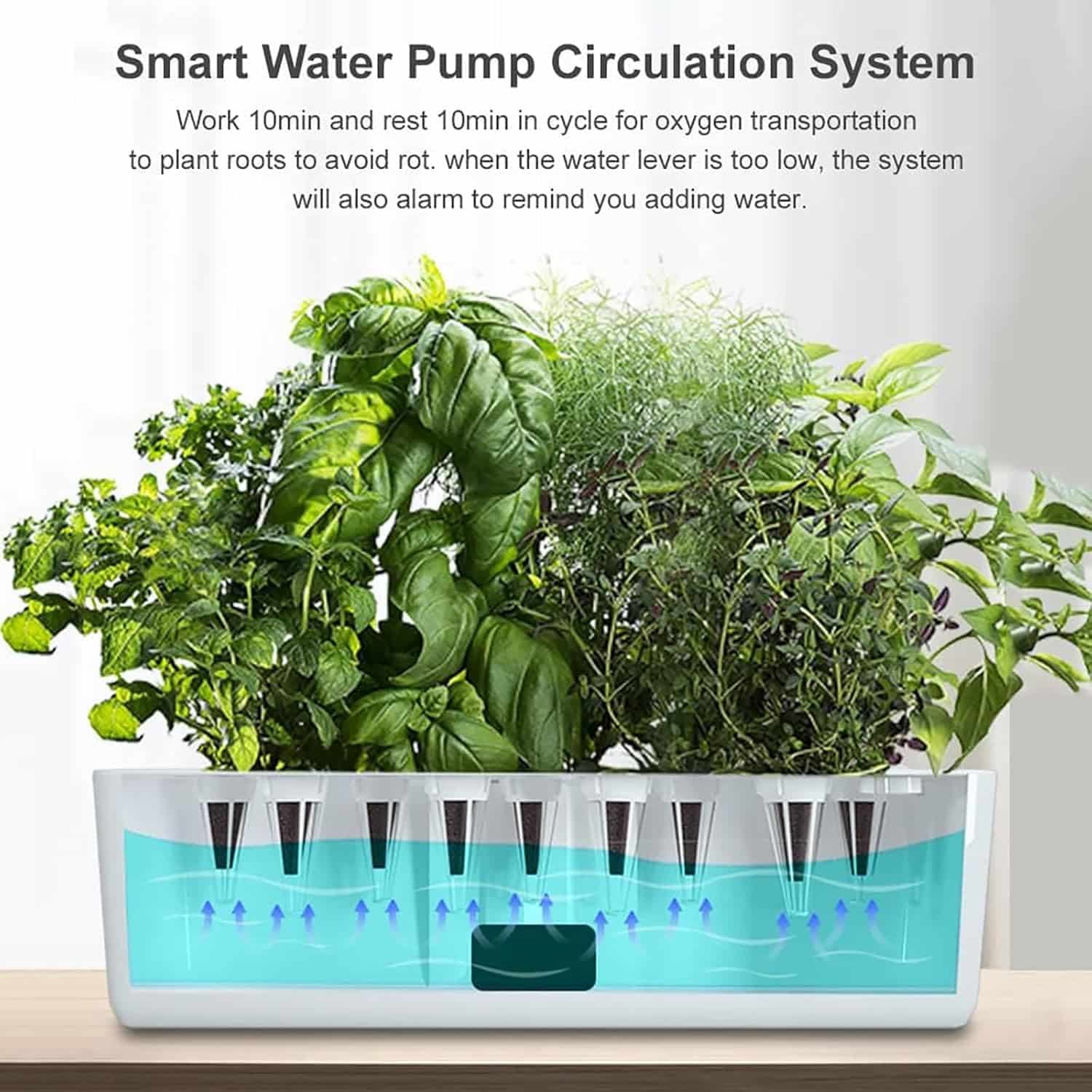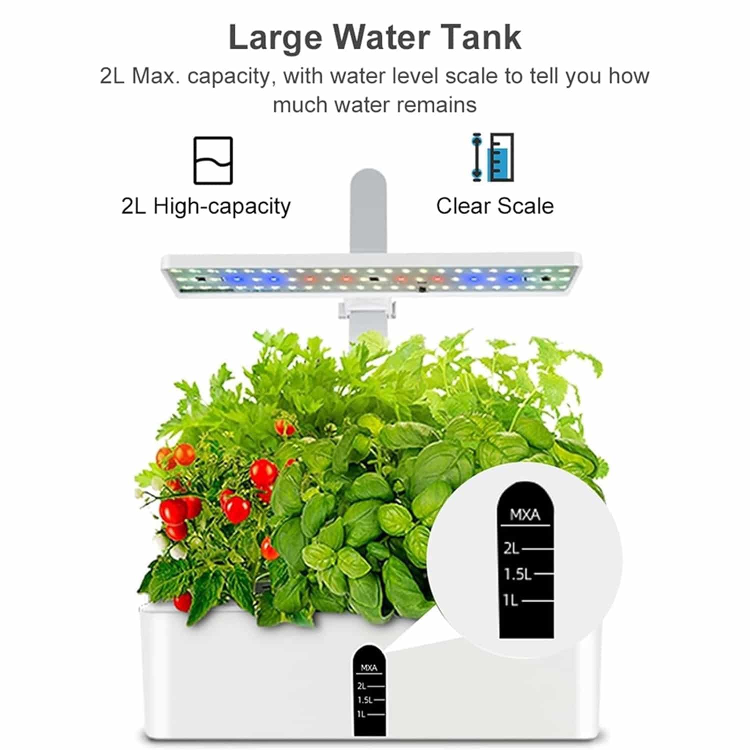 Depending on plant size and stage, you'll typically refill every 1-2 weeks. The transparent water level indicator makes monitoring easy, and the low-water alarm provides advance notice. Larger, mature plants consume more water than seedlings, so frequency varies throughout growth.