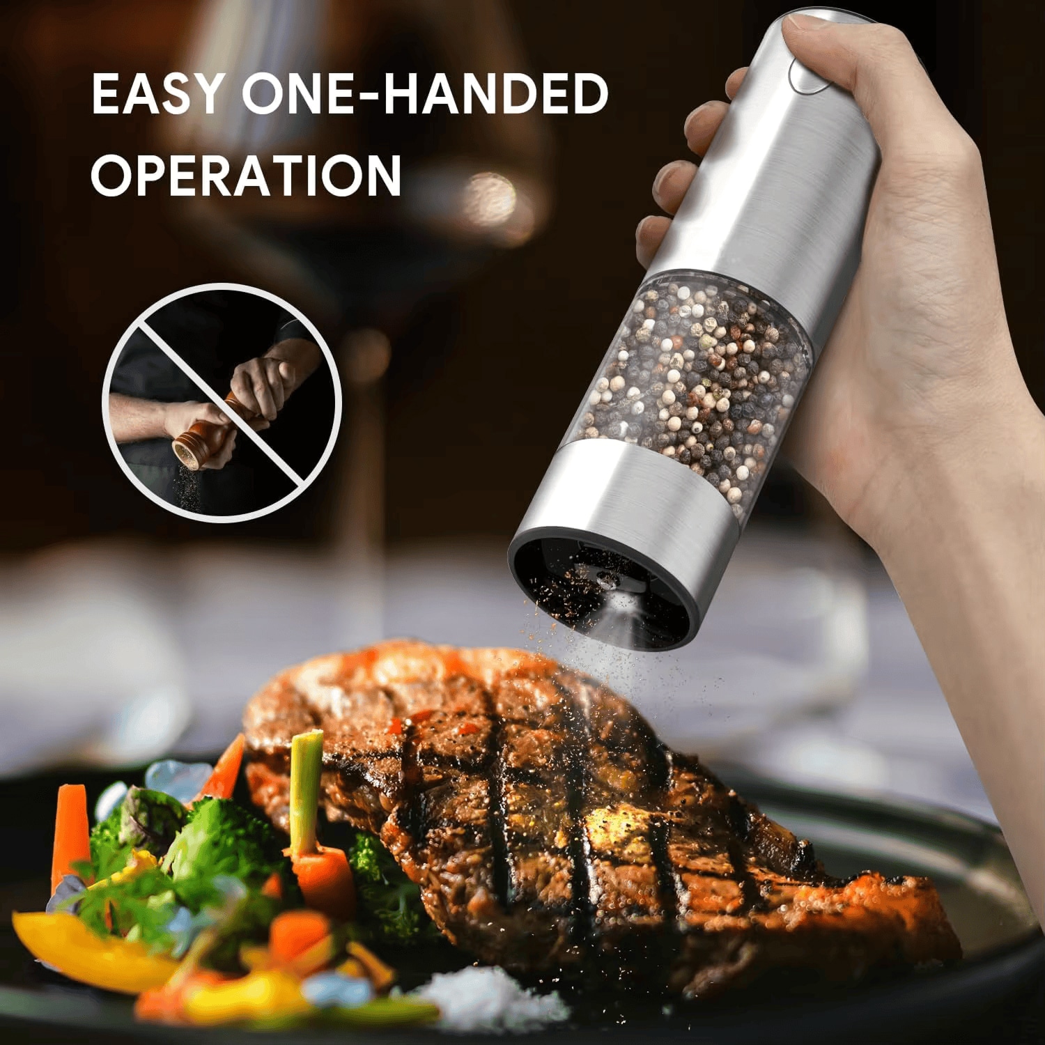 Elevate Every Meal with the One-Touch GrindTise Electric Salt and Pepper Grinder