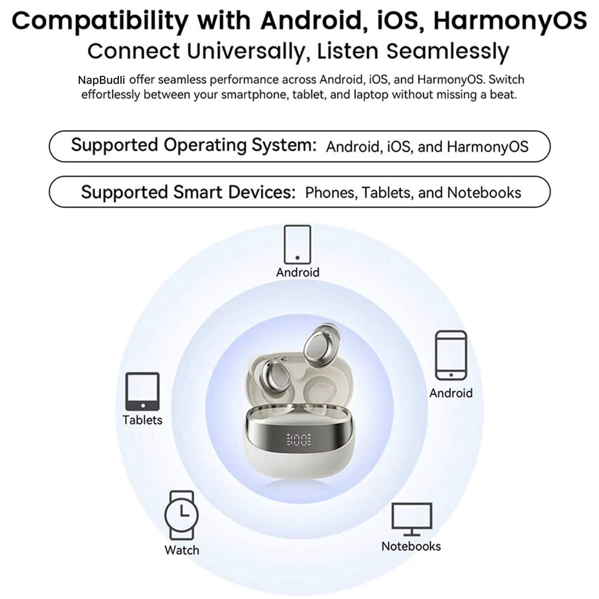 The 400mAh charging case of NapBudli Noise Cancelling Earbuds for Sleeping provides extended listening hours. With quick-charge technology delivering 50% power in just 10 minutes, you’ll never worry about running out of battery during your nightly relaxation routine.