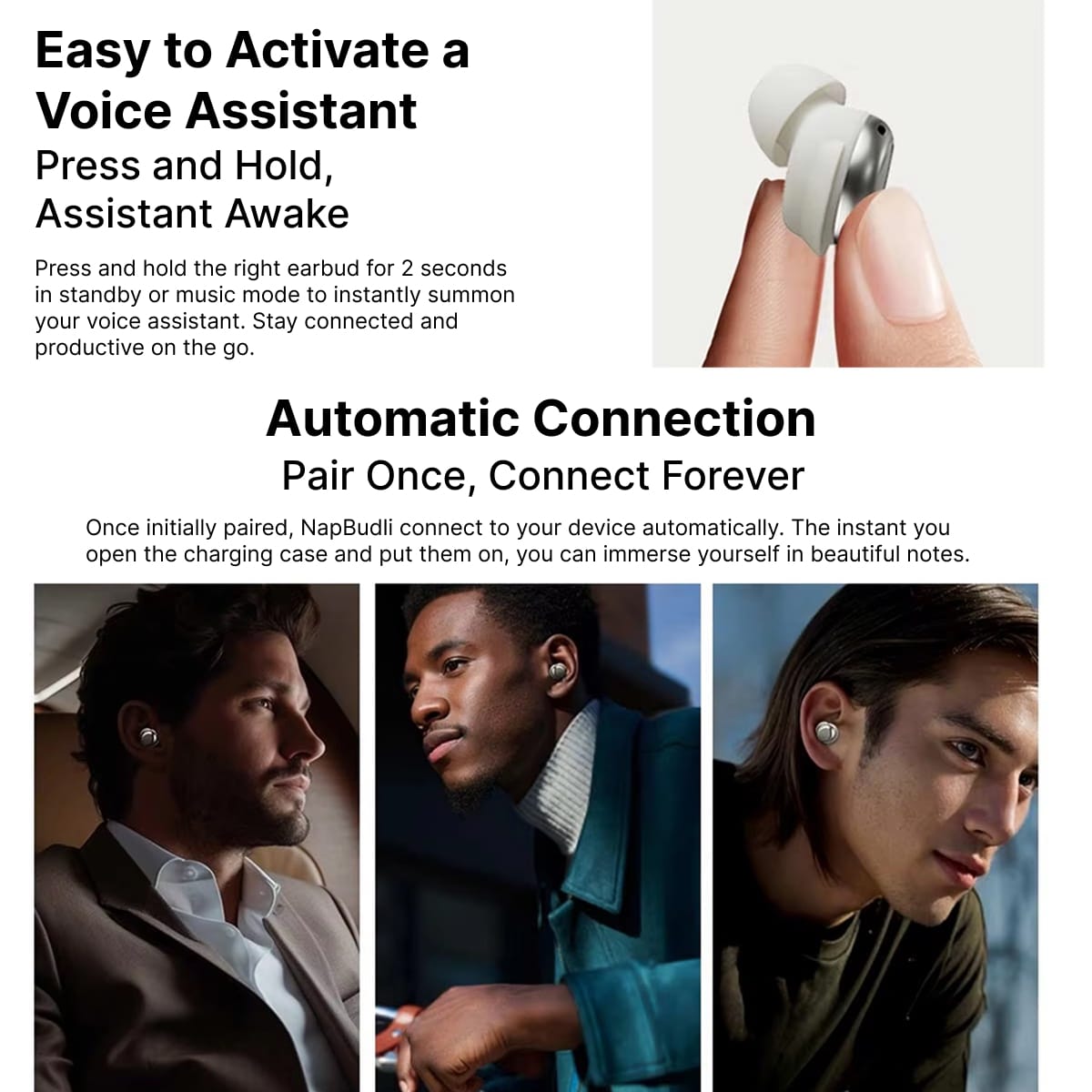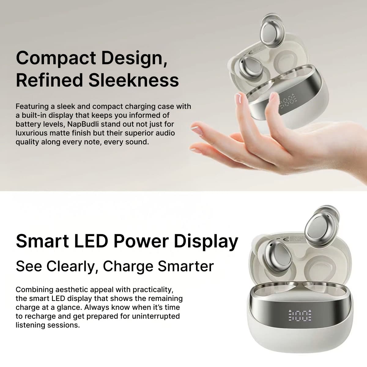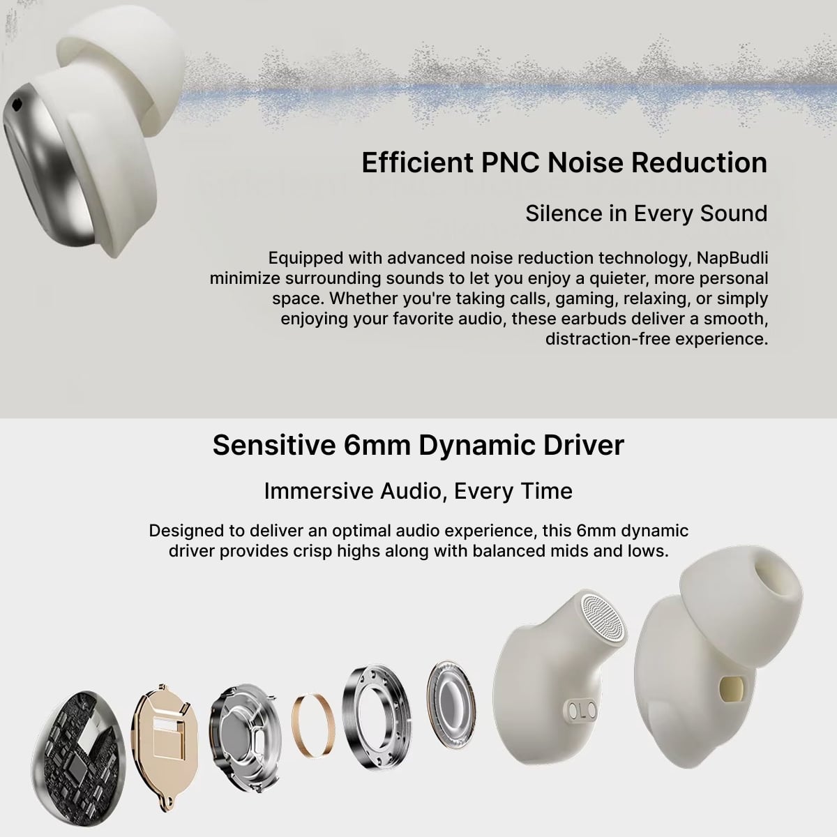 Transform your nights with NapBudli earbuds designed for ultimate comfort and tranquility. Featuring ultra-light design, advanced noise reduction, and Tailored Sleep Mode, these earbuds ensure peaceful, uninterrupted rest every single night.