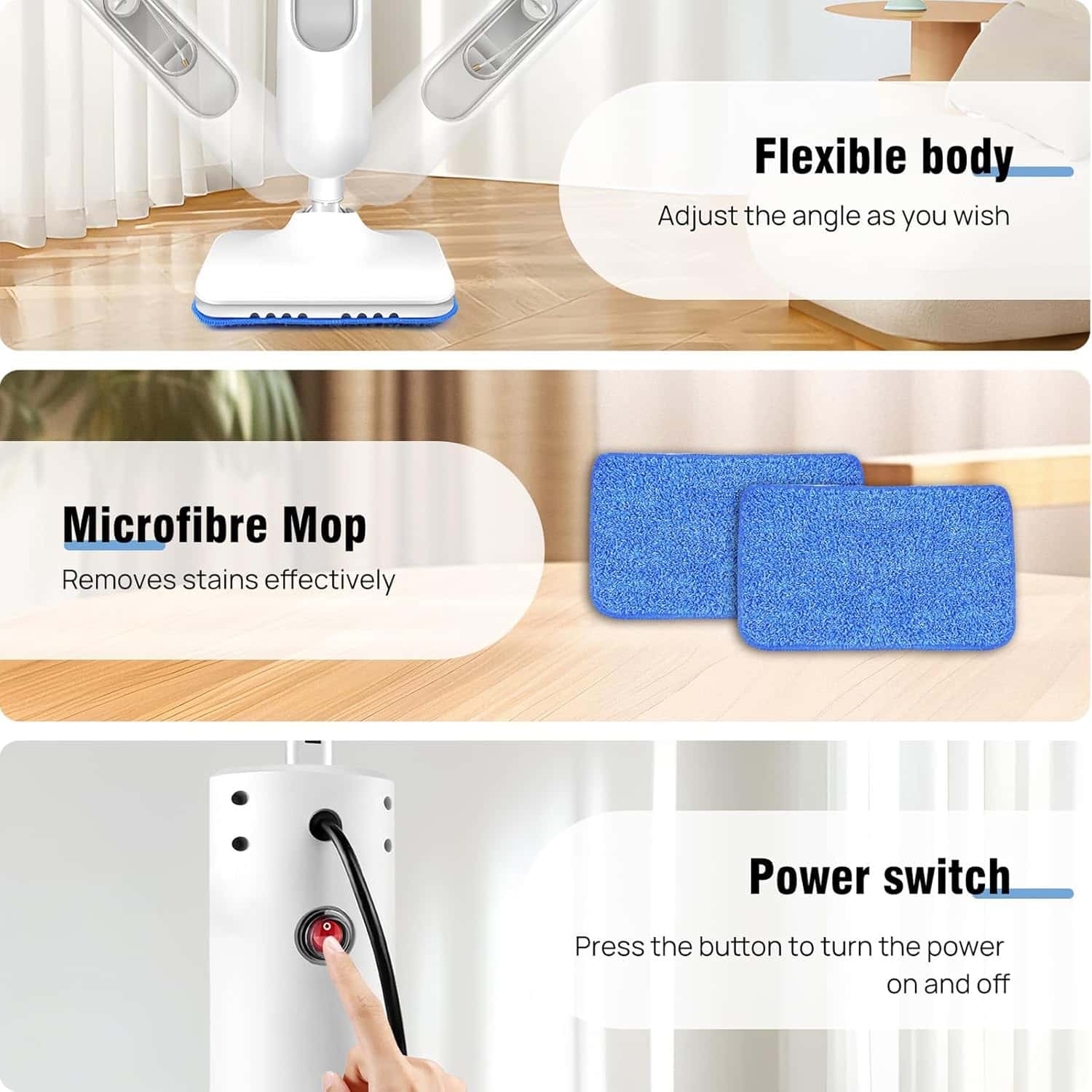 The NeatFomi Steam Mop for Wood Floors reaches temperatures of 212°F, which is hot enough to eliminate 99.99% of bacteria and stubborn grease.