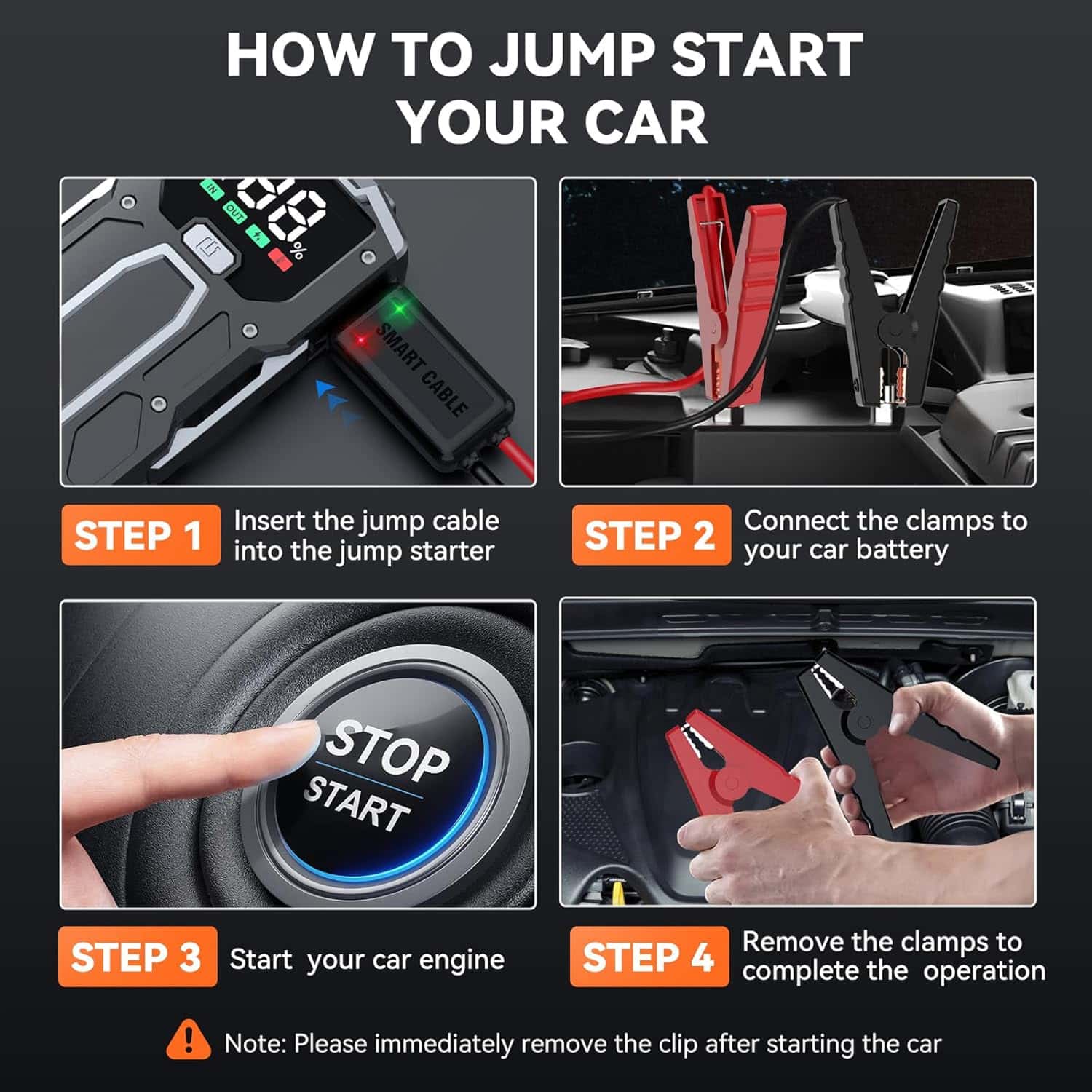 The OrisBend Car Battery Jump Starter provides 3000A peak current that starts vehicles instantly. No more waiting in dangerous situations or extreme weather conditions when you need power immediately.