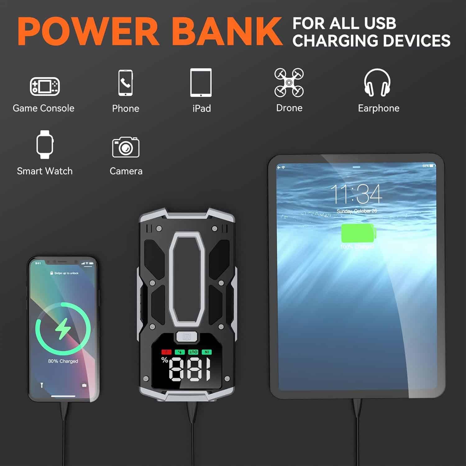 The 26800mAh capacity handles multiple jump-starts on a single charge while powering devices throughout your journey. Keep backup power above 25% for optimal performance and reliability.