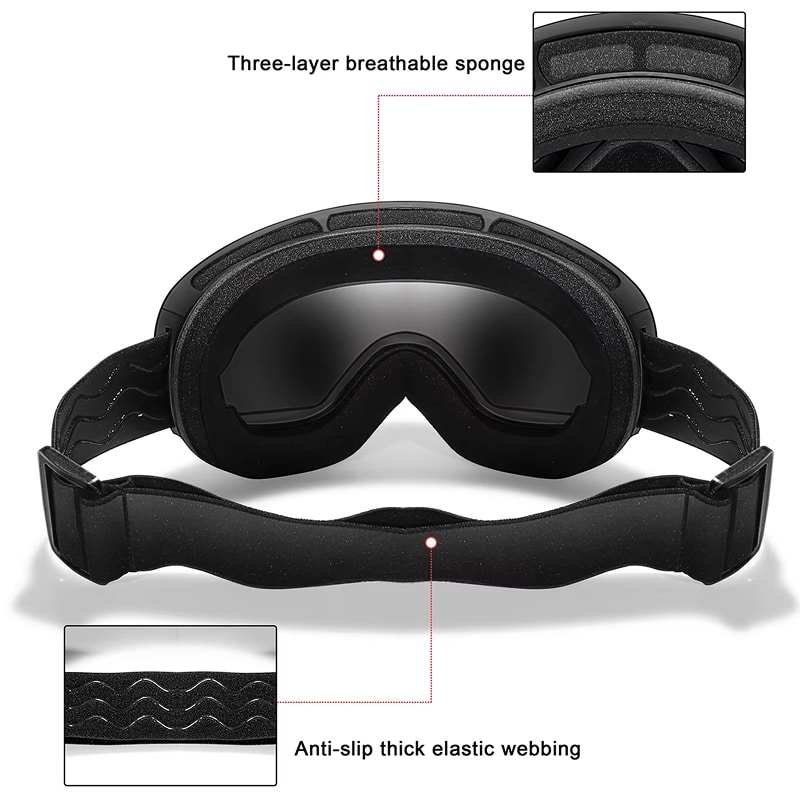 RosGlaco Snowboard Goggles accommodate most standard prescription eyewear comfortably. The oversized 19.5cm frame provides ample interior space, though bulky or oversized prescription frames may create pressure points.