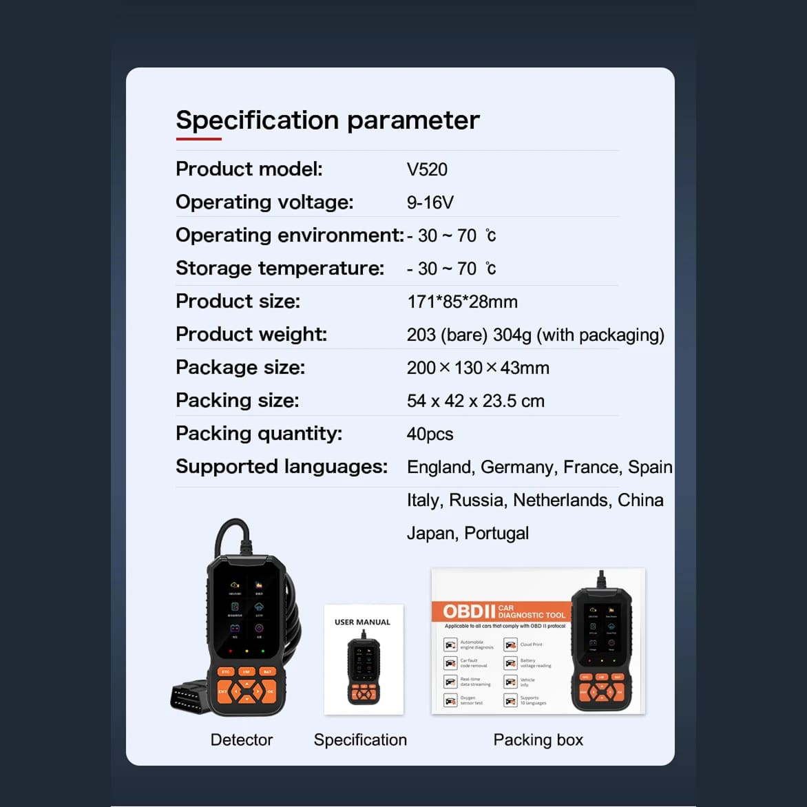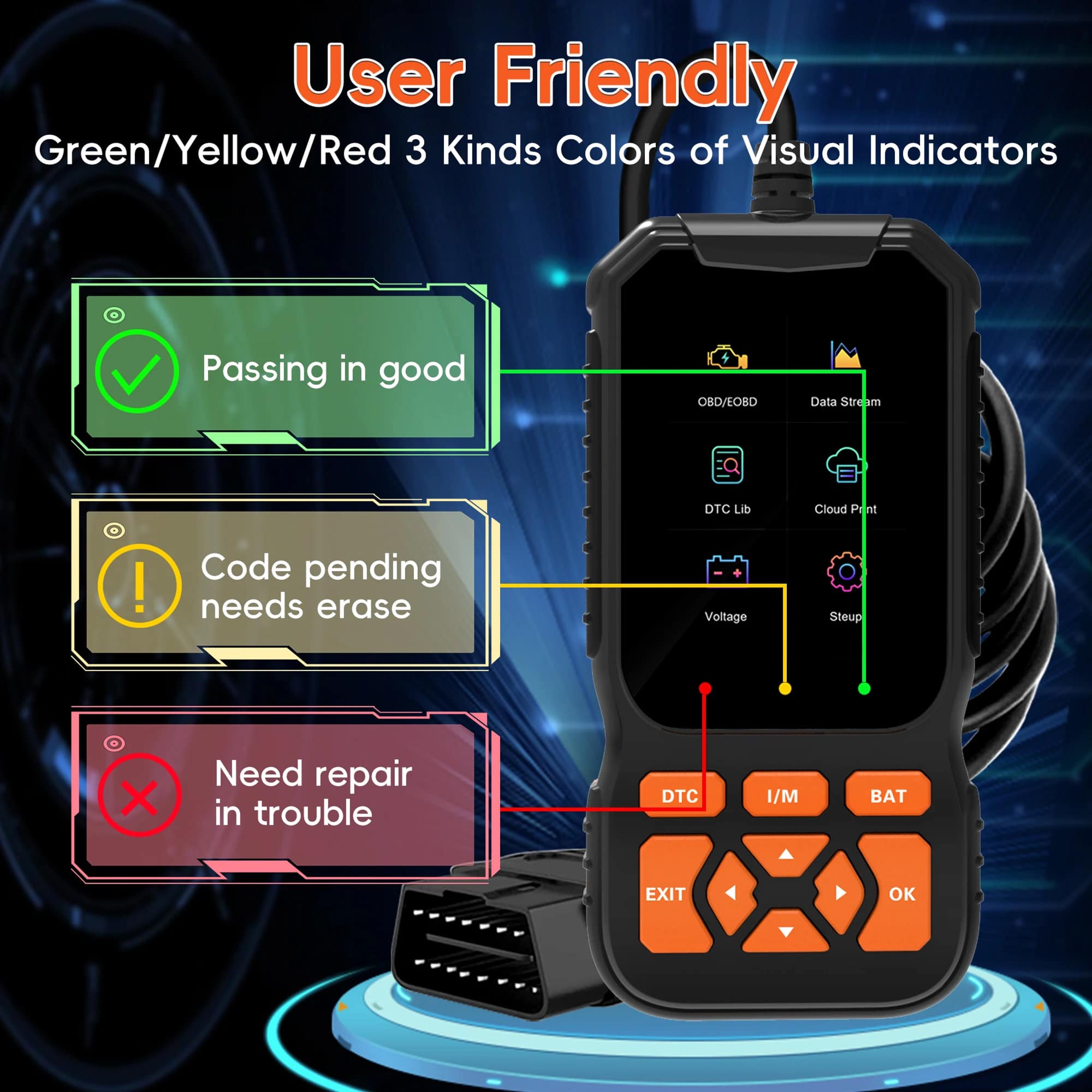 The ScanMinix OBD2 Scanner draws power directly from your vehicle's OBD port, so there's no need for separate batteries or charging before running diagnostics.