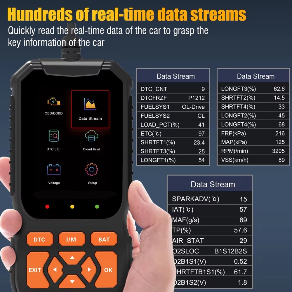 The ScanMinix OBD2 Scanner displays live parameters such as RPM, coolant temperature, fuel system status, intake air temperature, fuel trims, and more, helping you spot irregular behavior.