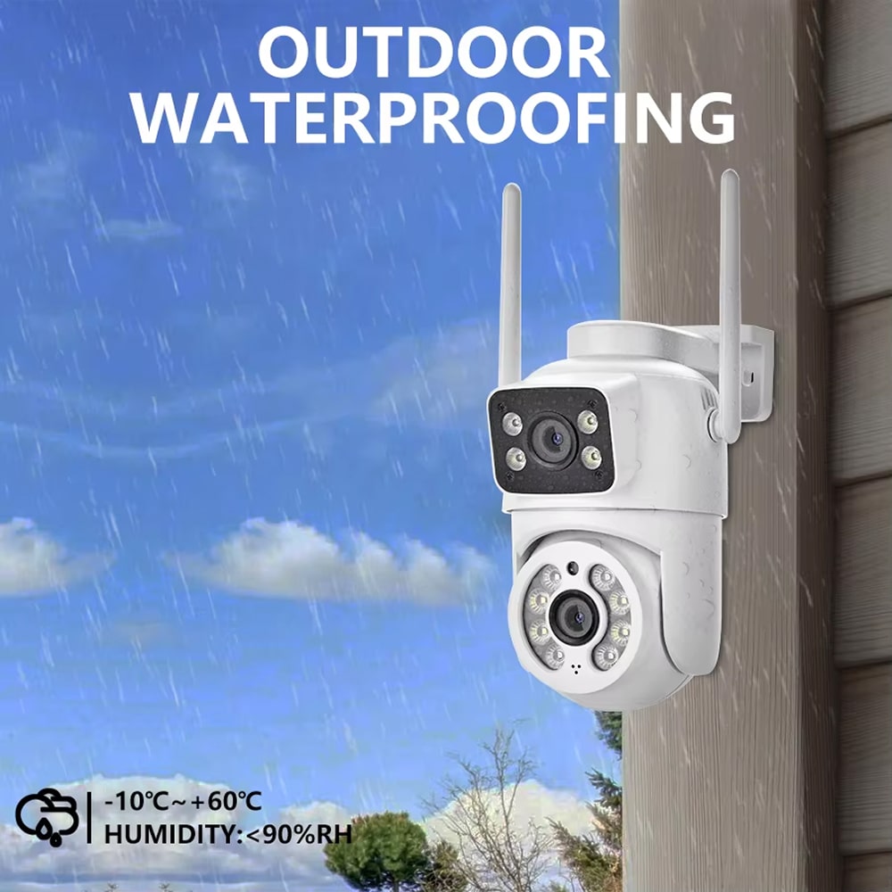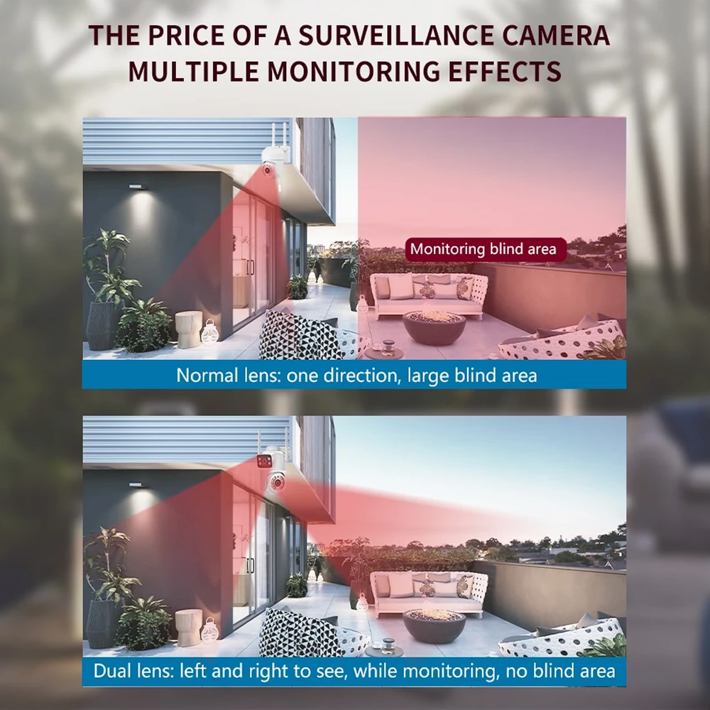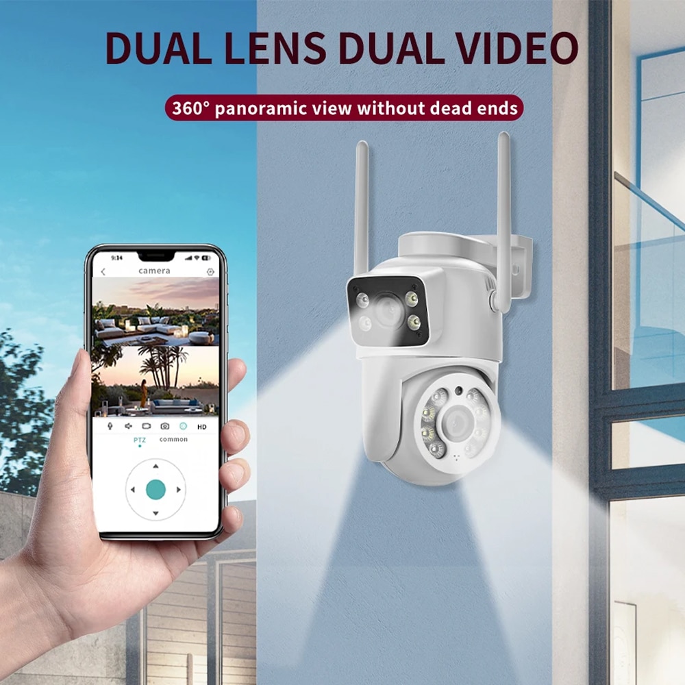The SicusCam features two separate lenses that provide 360° panoramic coverage, monitoring both left and right simultaneously for complete home surveillance.