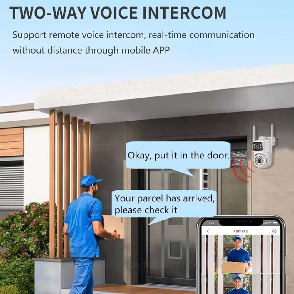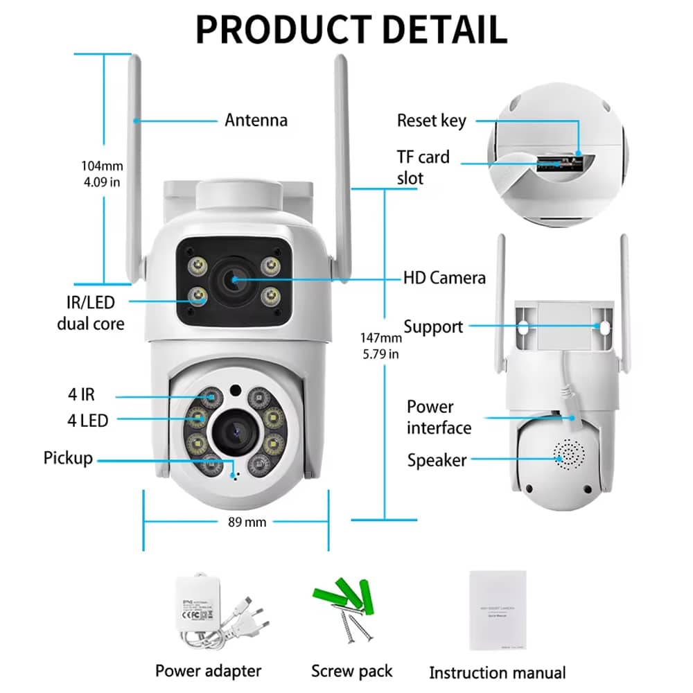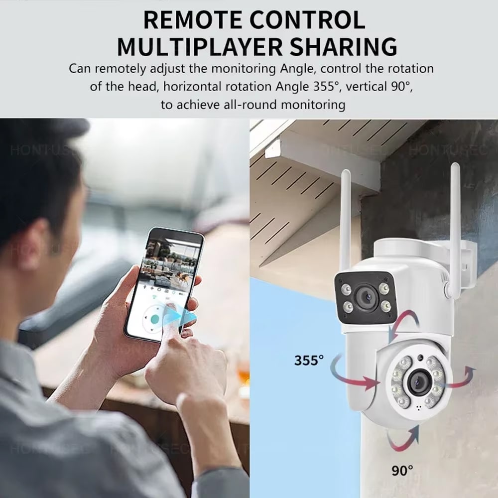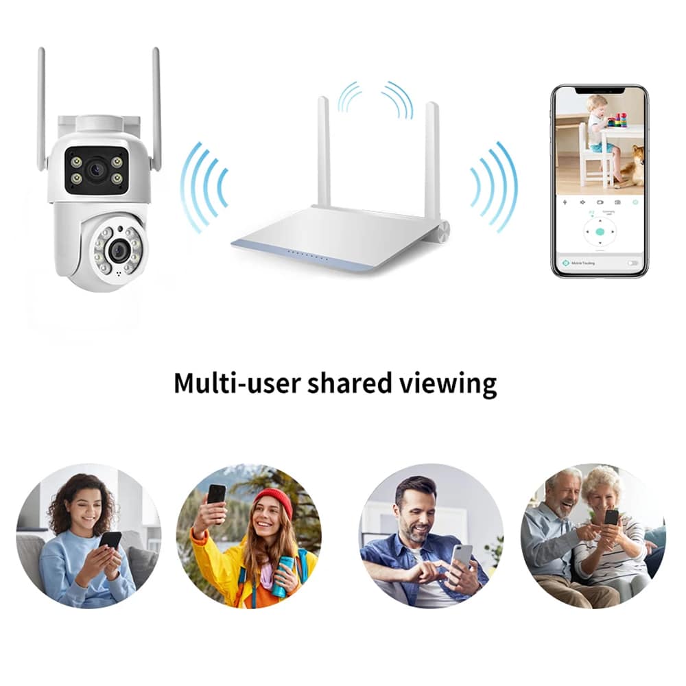 The SicusCam features two separate lenses that provide 360° panoramic coverage, monitoring both left and right simultaneously for complete home surveillance.