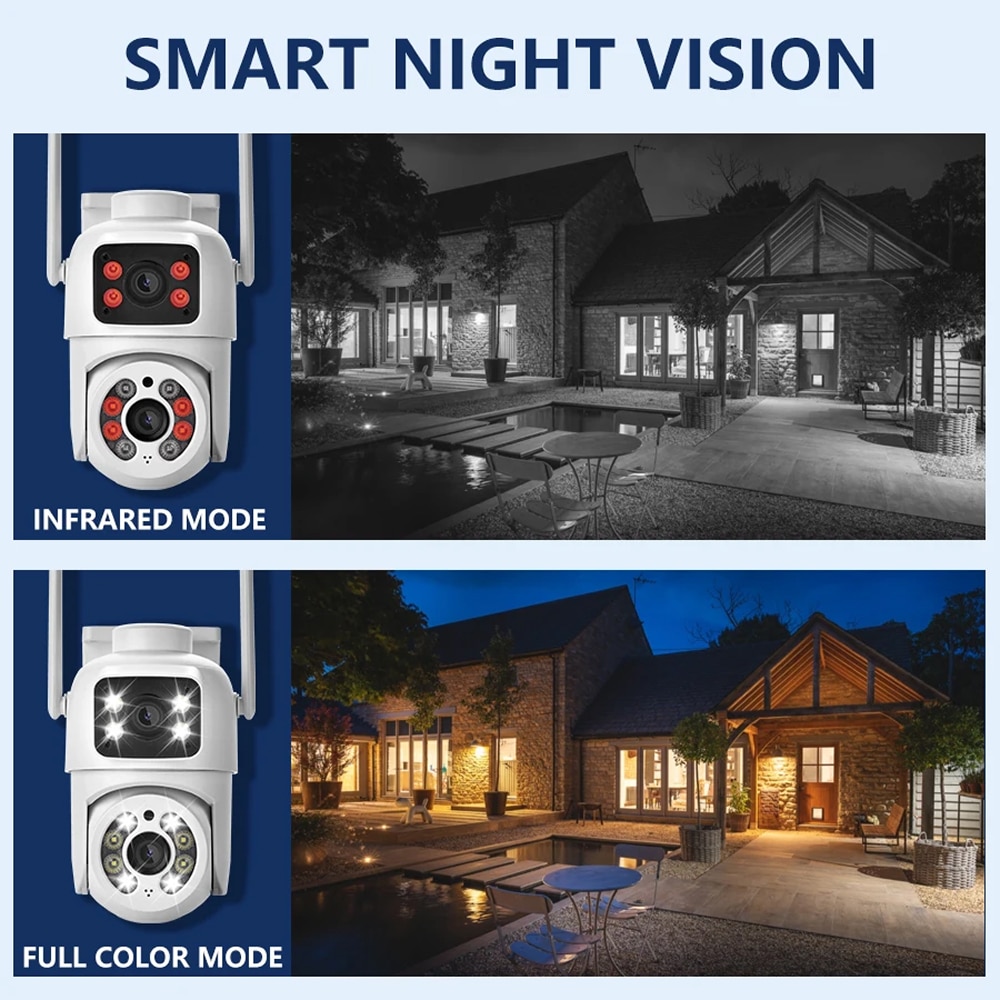 The SicusCam offers three night vision modes: Starlight Full Color, Infrared Night Vision, and Double Light Alert for optimal visibility in any lighting.