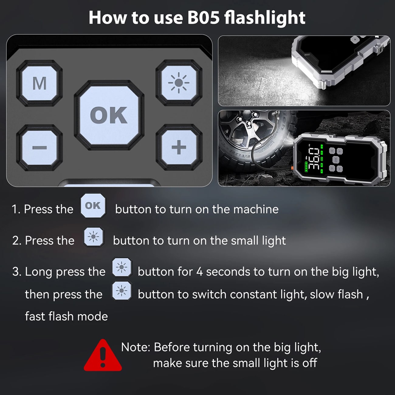 The digital gauge provides highly accurate readings with ±1 PSI precision. Real-time monitoring updates every second during inflation, giving you professional-level accuracy for proper tire pressure maintenance and safety.