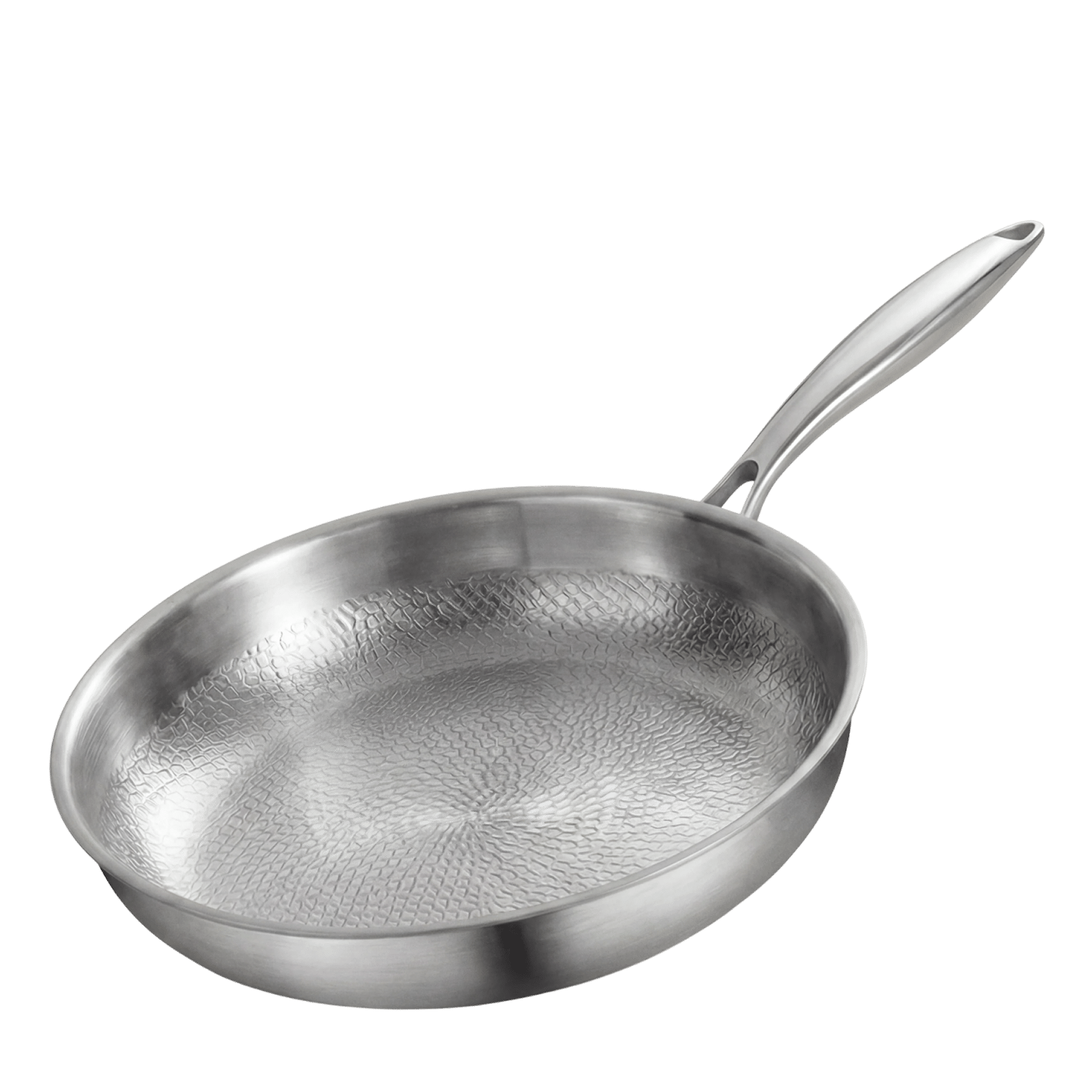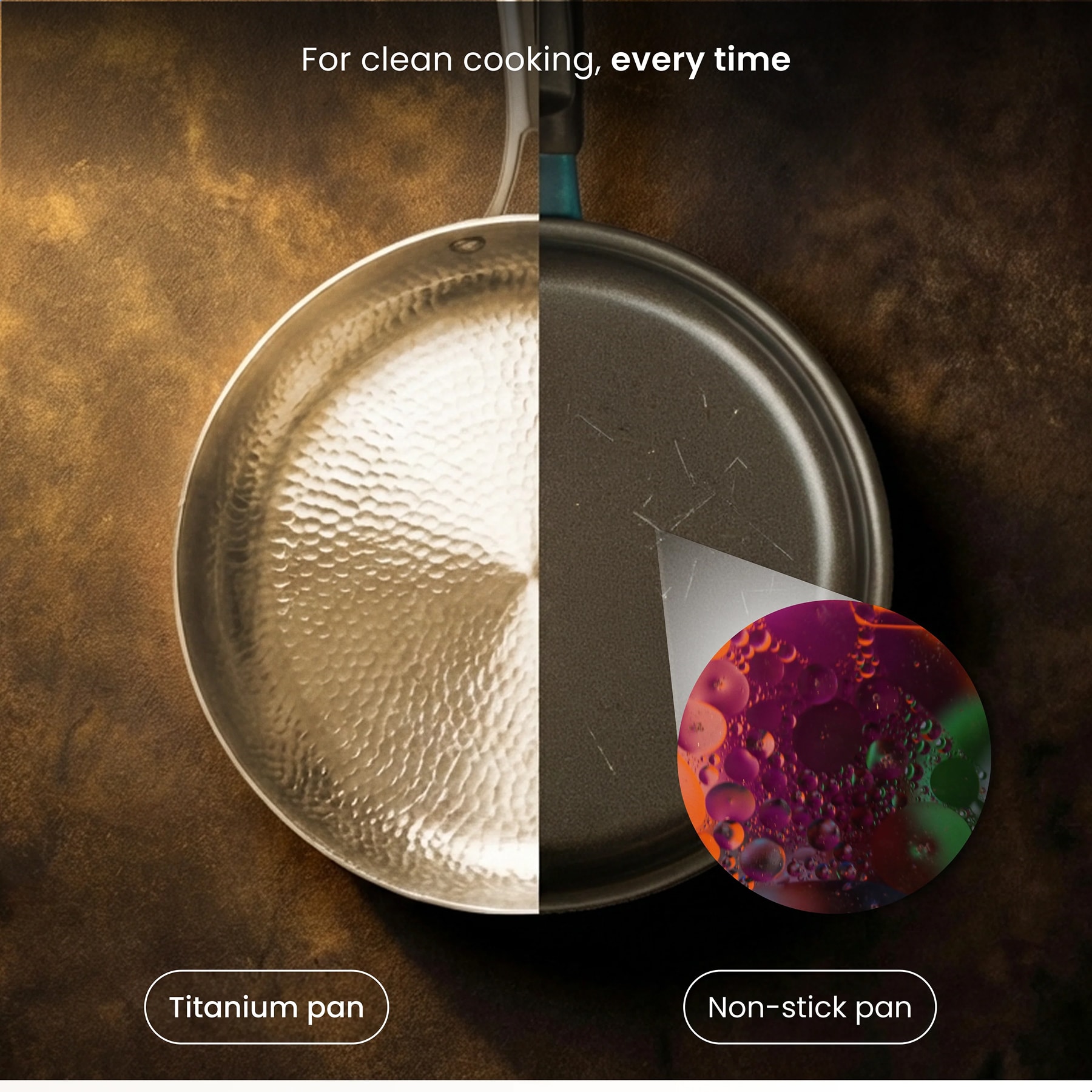 A professional-grade frying pan crafted from solid medical titanium for healthy, permanent non-stick performance in any modern home kitchen.