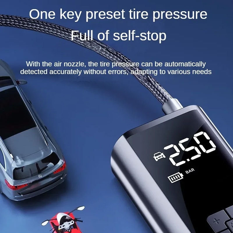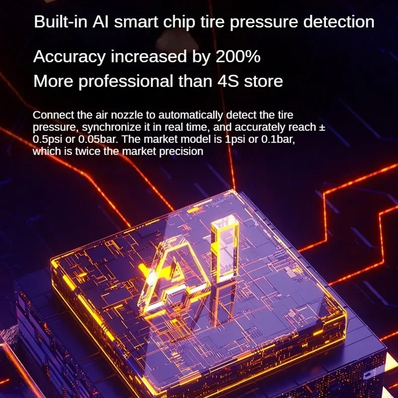 The AI-powered auto-stop system is extremely precise, stopping within 0.5 PSI of your preset level. It continuously monitors pressure in real-time and automatically shuts off to prevent over-inflation and ensure tire safety.