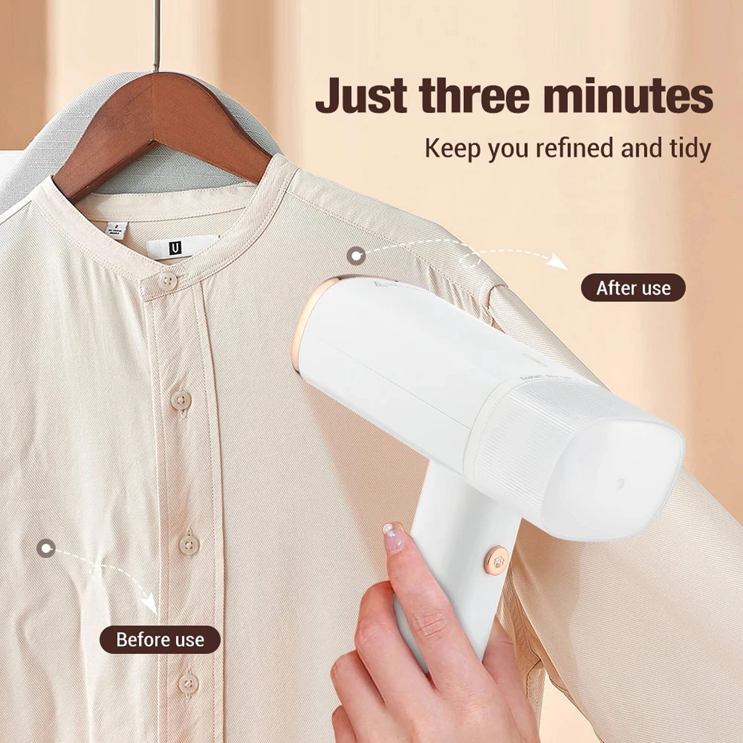 The VapoGoci Travel Steamer heats up in just 40 seconds, allowing you to start steaming your clothes almost instantly for quick wrinkle removal.