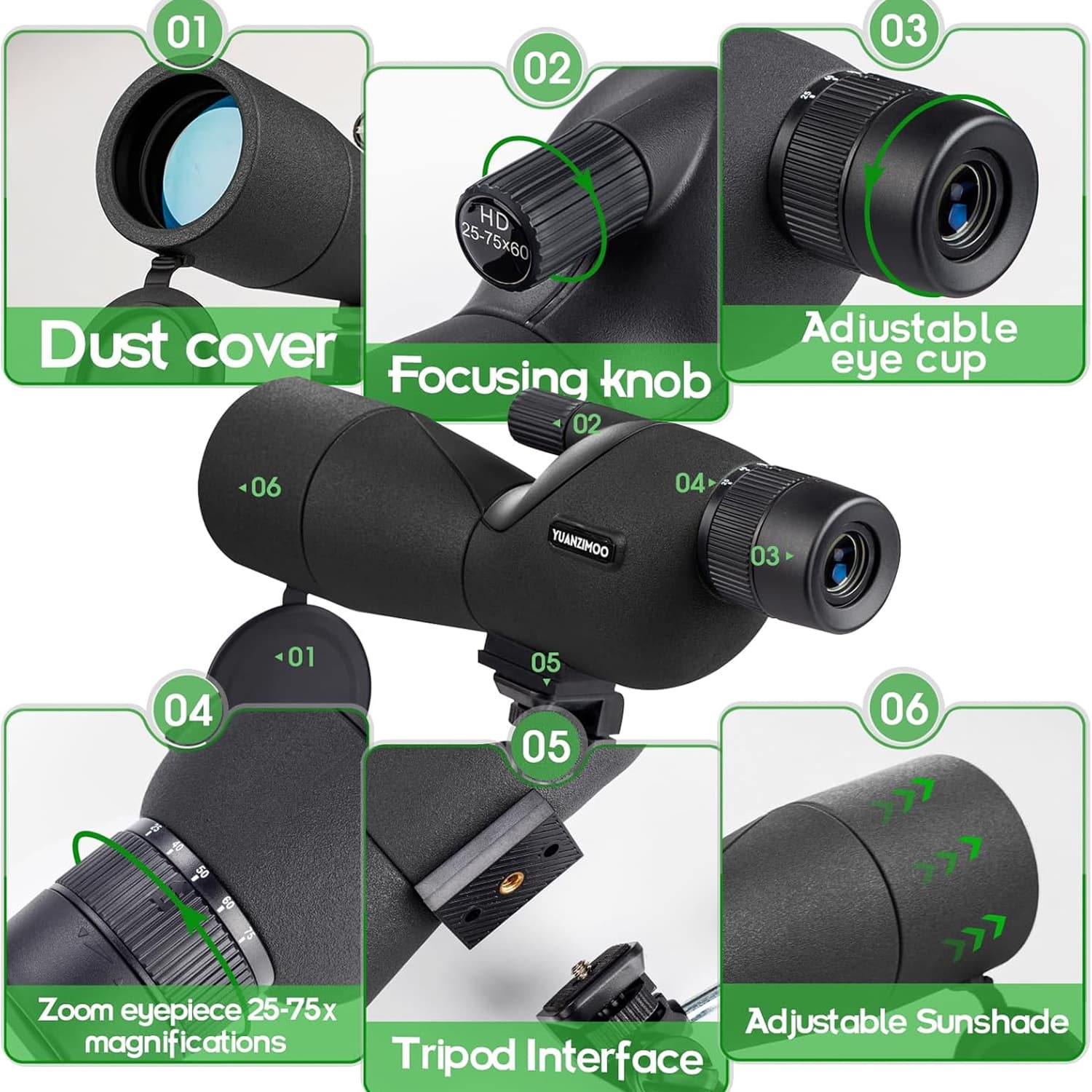 The VastOpti Spotting Scope delivers variable 25-75x magnification with smooth zoom control, letting you effortlessly locate subjects at 25x then zoom to 75x for stunning detail. Perfect for tracking birds, observing wildlife, or monitoring distant targets with professional-grade precision.