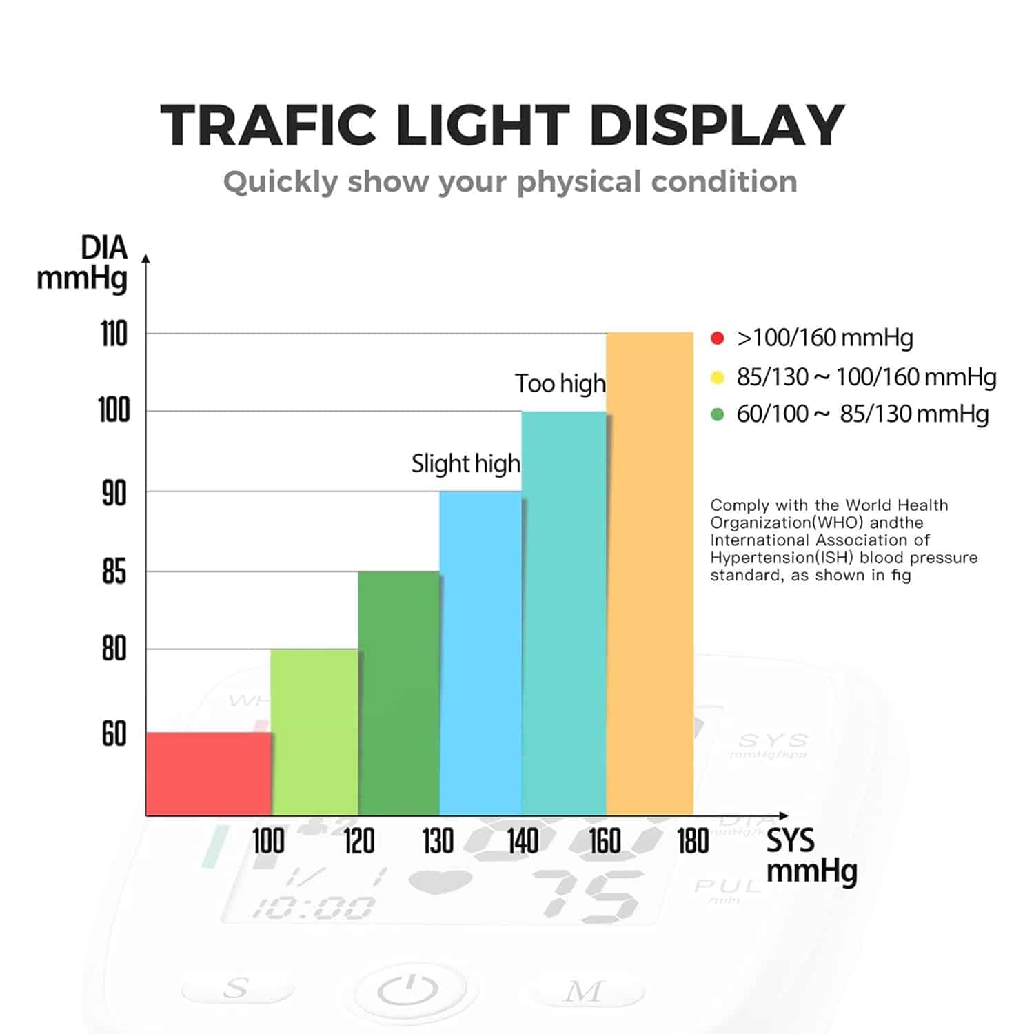 Rest assured with VitalArtrix’s clinically validated technology that meets international accuracy standards. The monitor features color-coded indicators that immediately classify your readings according to established health guidelines, providing clear visual feedback about your blood pressure status and helping you track trends over time.